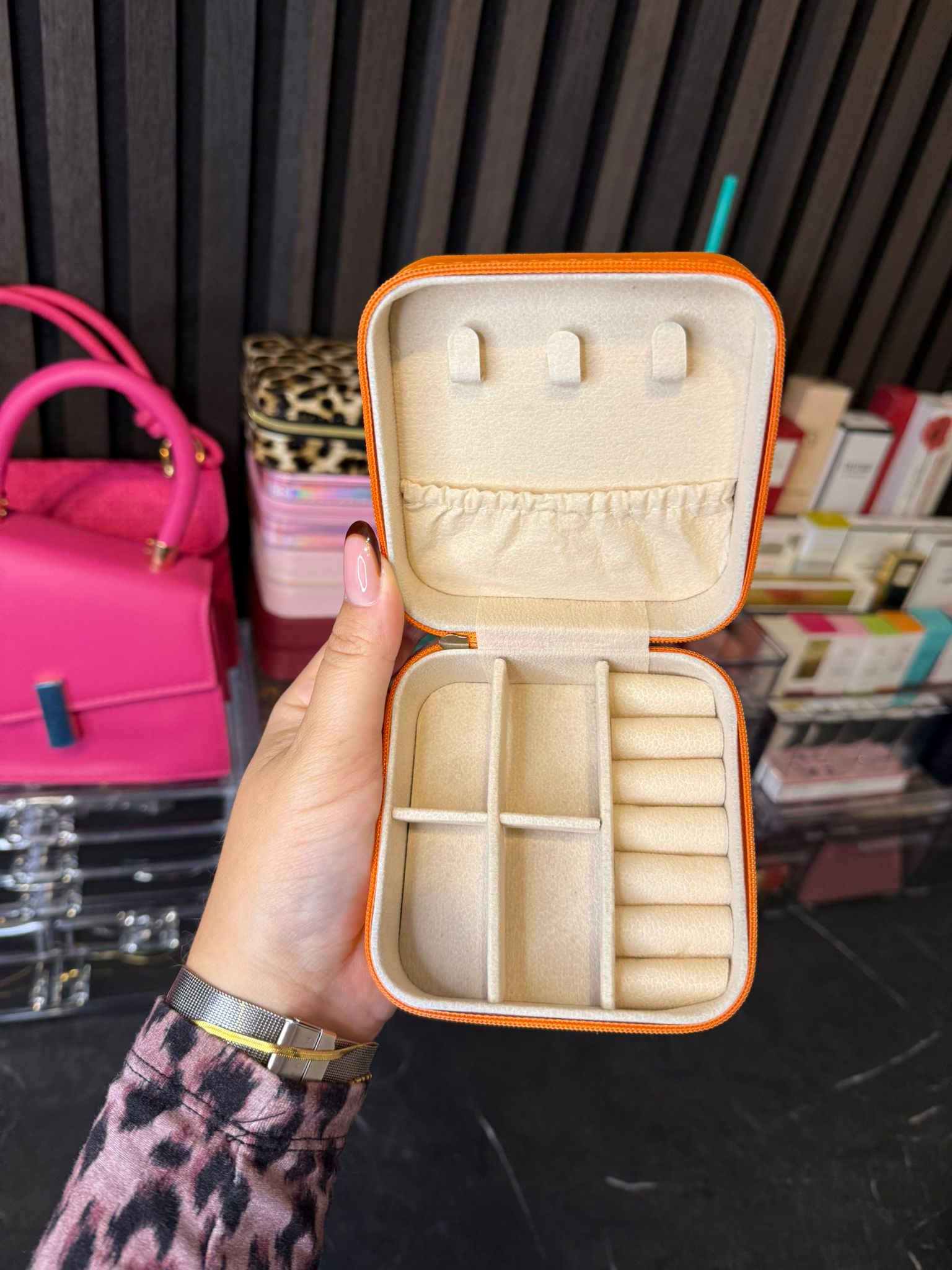 Bewaar je ringen, armbanden, oorbellen en kettingen overzichtelijk in deze stijlvolle sieradendoos. Met vakjes en haakjes voor 13 sieraden, compacte afmeting en een stevige rits. Ideaal voor thuis én op reis.