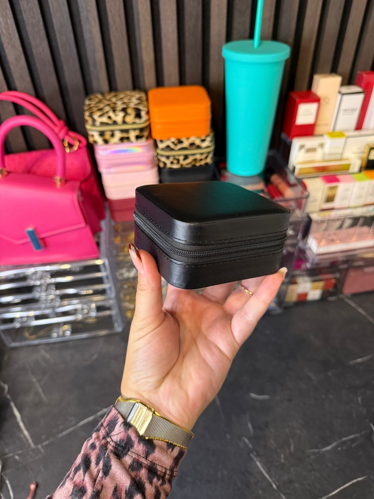 Bewaar je ringen, armbanden, oorbellen en kettingen overzichtelijk in deze stijlvolle sieradendoos. Met vakjes en haakjes voor 13 sieraden, compacte afmeting en een stevige rits. Ideaal voor thuis én op reis.
